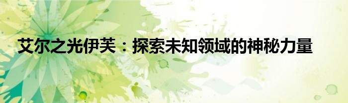 在艾尔之光的世界中,伊芙拥有着强大的神秘力量。这种力量使她能够探索未知领域,解决各种难题和挑战。她的力量不仅体现在战斗中,还体现在她对世界的理解和探索上。通过她的力量,玩家可以解锁更多的游戏内容,体验更多未知的世界。