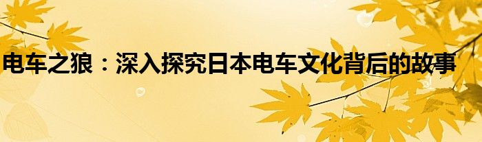 电车之狼:深入探究日本电车文化背后的故事