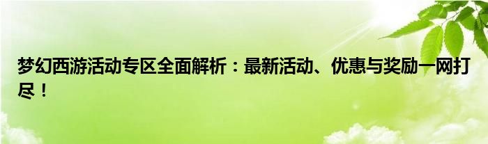 梦幻西游活动专区是玩家获取最新活动信息、优惠与奖励的重要渠道。玩家可以通过参与活动专区内的各类活动,提升游戏体验,获取丰厚奖励。请广大玩家密切关注活动专区的更新,共同体验梦幻西游的魅力!