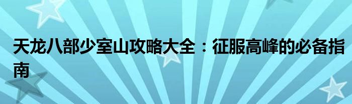 天龙八部少室山攻略大全:征服高峰的必备指南