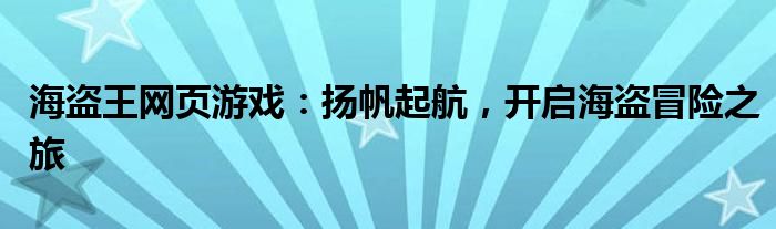 海盗王网页游戏:扬帆起航,开启海盗冒险之旅