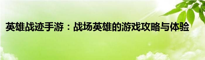 英雄战迹手游:战场英雄的游戏攻略与体验