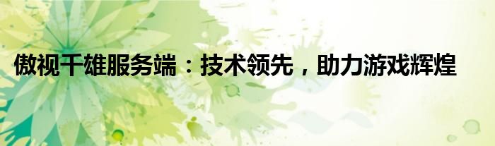 傲视千雄服务端:技术领先,助力游戏辉煌
