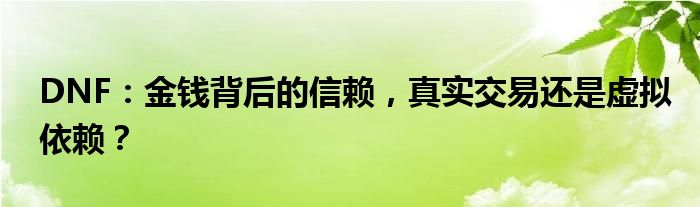 DNF:金钱背后的信赖,真实交易还是虚拟依赖?