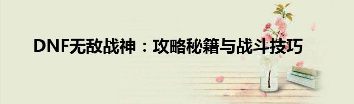 DNF无敌战神:攻略秘籍与战斗技巧