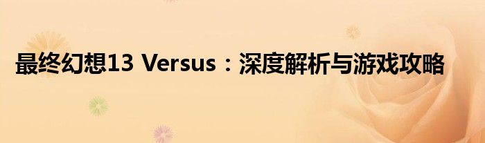 本文将为大家带来关于《最终幻想13 Versus》的深度解析与游戏攻略。我们将全面剖析这款备受欢迎的角色扮演游戏的各个方面,帮助玩家更好地理解和享受游戏。
