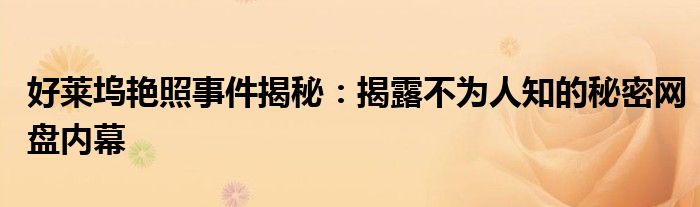 好莱坞艳照事件揭秘:揭露不为人知的秘密网盘内幕
