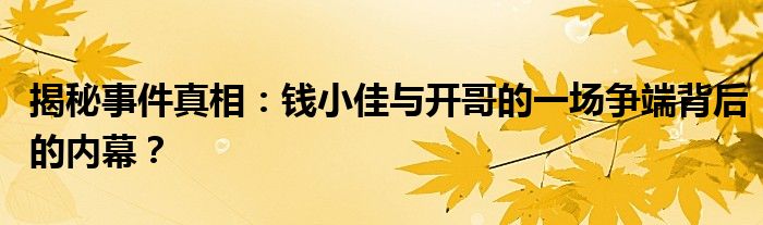 揭秘事件真相:钱小佳与开哥的一场争端背后的内幕?