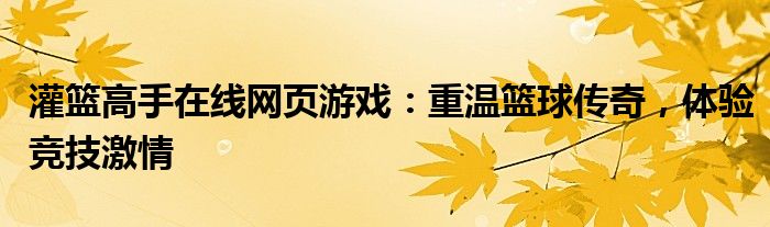 总之,《灌篮高手在线网页游戏》是一款集竞技、策略、社交于一体的在线网页游戏。在这里,玩家可以重温《灌篮高手》的篮球传奇,体验竞技激情,享受游戏带来的乐趣。