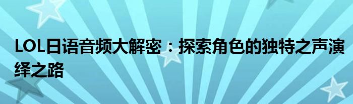 LOL日语音频大解密:探索角色的独特之声演绎之路