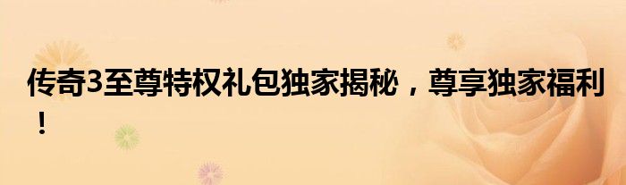传奇3至尊特权礼包独家揭秘,尊享独家福利!