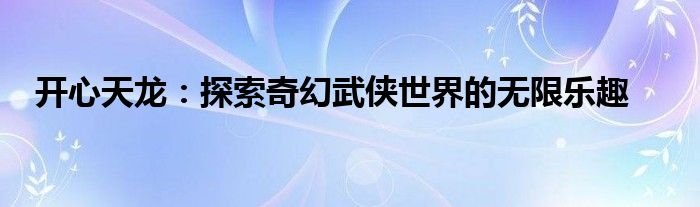 开心天龙:探索奇幻武侠世界的无限乐趣