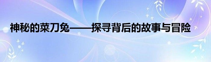 今天我们要来一起探寻一个神秘而有趣的主题——“菜刀兔”。这个关键词背后隐藏着怎样的故事和冒险呢?让我们一探究竟。