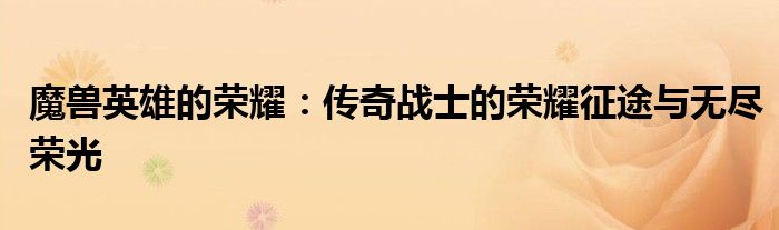 魔兽英雄的荣耀:传奇战士的荣耀征途与无尽荣光