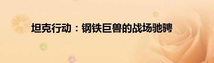 本文将围绕“坦克行动”这一主题展开,带您领略钢铁巨兽在战场上的驰骋风采。