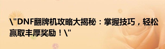 "DNF翻牌机攻略大揭秘:掌握技巧,轻松赢取丰厚奖励!"