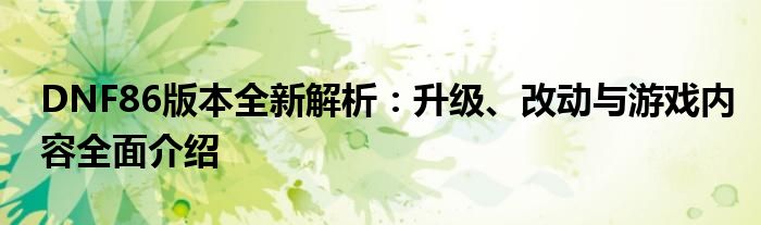 DNF86版本全新解析:升级、改动与游戏内容全面介绍