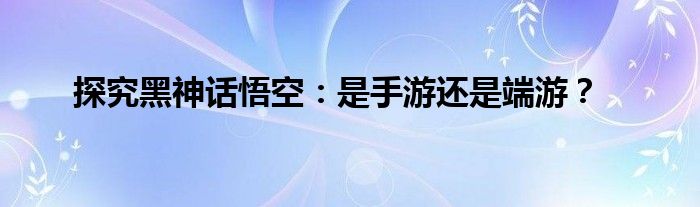 探究黑神话悟空:是手游还是端游?
