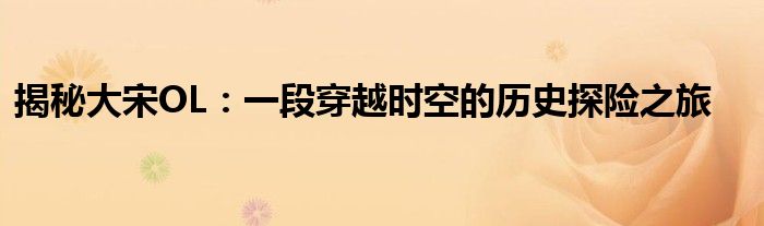 揭秘大宋OL:一段穿越时空的历史探险之旅
