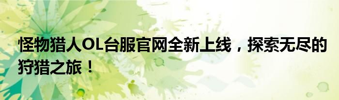 欢迎猎人们来到怪物猎人OL台服官网!这里是猎人们的狩猎天堂,你可以尽情探索无尽的狩猎世界,与其他猎人一起挑战强大的怪兽,体验刺激的战斗快感。