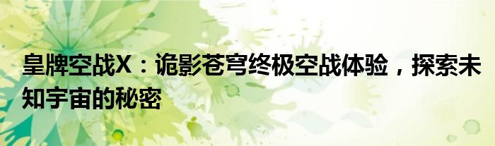 皇牌空战X:诡影苍穹终极空战体验,探索未知宇宙的秘密