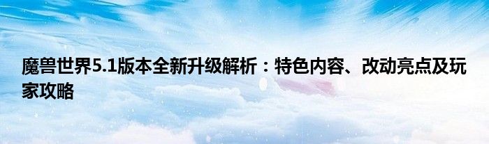 魔兽世界5.1版本全新升级解析:特色内容、改动亮点及玩家攻略