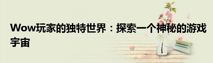 Wow玩家的独特世界:探索一个神秘的游戏宇宙