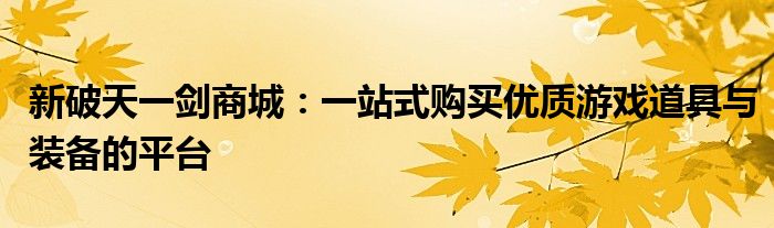 新破天一剑商城:一站式购买优质游戏道具与装备的平台
