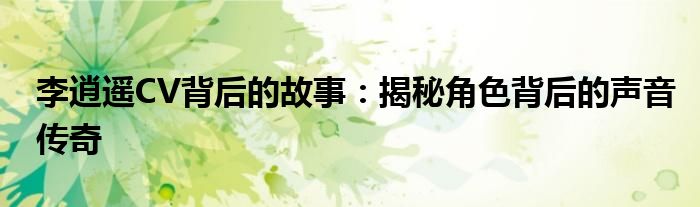 李逍遥CV背后的故事:揭秘角色背后的声音传奇