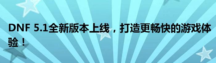 DNF 5.1全新版本上线,打造更畅快的游戏体验!