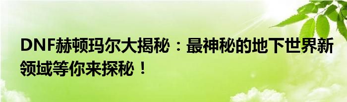 DNF赫顿玛尔大揭秘:最神秘的地下世界新领域等你来探秘!
