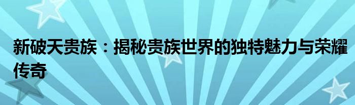 本文将全面介绍“新破天贵族”这一独特群体,从他们的起源、发展、特权、责任以及背后的荣耀传奇等方面展开探讨。