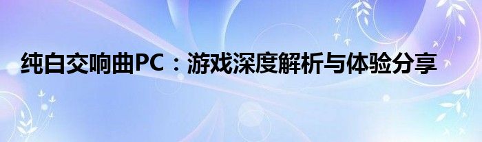 今天,我们来深入探讨一款备受玩家喜爱的游戏——《纯白交响曲PC》。这款游戏以其独特的艺术风格、丰富的游戏剧情和深度的游戏体验吸引了大量玩家。接下来,我们将从游戏背景、角色设定、游戏玩法等方面,为大家带来这款游戏的深度解析与体验分享。