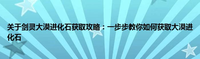 关于剑灵大漠进化石获取攻略:一步步教你如何获取大漠进化石