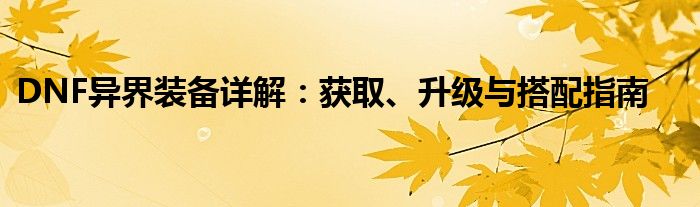 本文将详细介绍DNF(地下城与勇士)中的异界装备,包括其获取方式、属性特点、升级途径以及最佳搭配指南。希望本文能够帮助玩家们更好地理解和利用异界装备,提升游戏体验。
