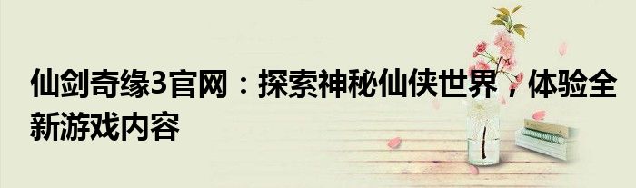 仙剑奇缘3官网:探索神秘仙侠世界,体验全新游戏内容