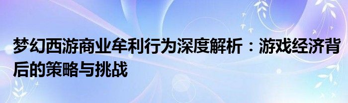 梦幻西游商业牟利行为深度解析:游戏经济背后的策略与挑战