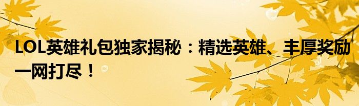 LOL英雄礼包独家揭秘:精选英雄、丰厚奖励一网打尽!