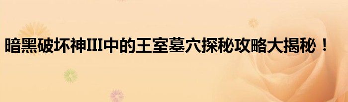 《暗黑破坏神III》以其深入人心的剧情和错综复杂的游戏世界而闻名于世。在这款游戏中,许多玩家都在寻找王室墓穴的过程中遭遇了困惑和阻碍。本篇文章就是为了帮助你轻松搞定这个问题,通过深入浅出的方式为你提供详细的攻略指南。让我们一起踏上寻找王室墓穴的冒险之旅吧!