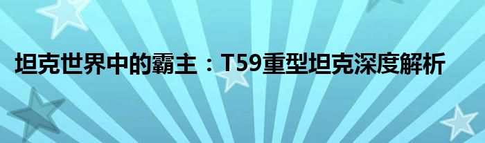 本文将全方位深度解析游戏《坦克世界》中的强力坦克T59,从其背景设定、外观设计、性能特点、战斗表现以及使用技巧等方面展开细致讨论,帮助玩家更好地了解和掌握这一重型坦克的使用技巧。