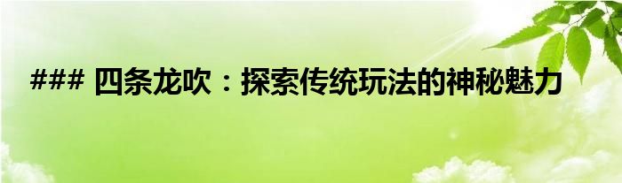 ### 四条龙吹:探索传统玩法的神秘魅力