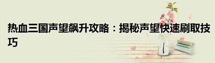 热血三国声望飙升攻略:揭秘声望快速刷取技巧