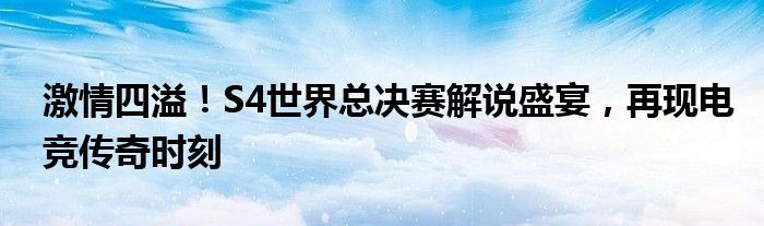激情四溢!S4世界总决赛解说盛宴,再现电竞传奇时刻