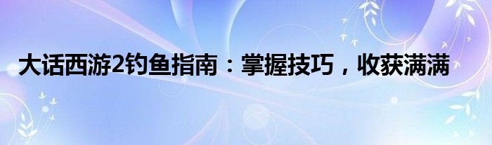大话西游2钓鱼指南:掌握技巧,收获满满