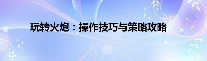 玩转火炮:操作技巧与策略攻略