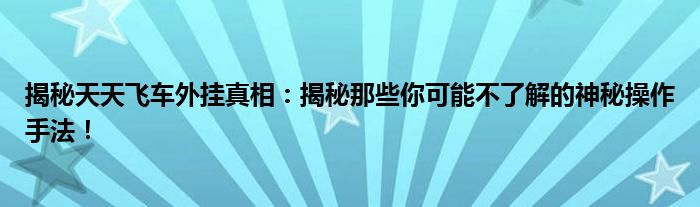 随着天天飞车这款游戏的火热程度持续上升,越来越多的玩家开始关注游戏中的外挂问题。今天,我们将深入探讨天天飞车外挂的真相,揭示这些神秘操作手法的背后真相。让我们一起来了解这些外挂如何影响游戏体验,以及它们可能带来的风险。