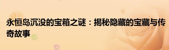 永恒岛沉没的宝箱之谜:揭秘隐藏的宝藏与传奇故事