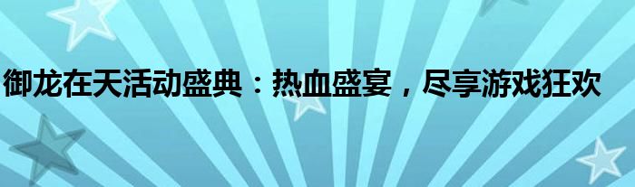 《御龙在天活动盛典:热血盛宴,尽享游戏狂欢》——这是一场激动人心的游戏盛宴,专为热爱御龙在天的玩家们精心打造。在这里,你将与成千上万的玩家共同体验这场无与伦比的游戏狂欢。