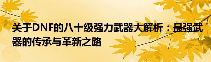 关于DNF的八十级强力武器大解析:最强武器的传承与革新之路