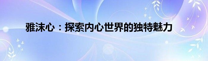 随着人们对内心世界的关注度不断提升,“雅沫心”作为一个关键词,逐渐进入了人们的视野。在这个快节奏的社会中,我们时常被各种琐事所困扰,而雅沫心这一概念则为我们提供了一个探索内心世界的契机。本文将围绕雅沫心展开,带你领略其独特魅力。
